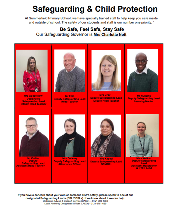 At Summerfield Primary School, safeguarding and promoting the welfare of children is our top priority. We believe that every child has the right to feel safe and be protected from harm. Below is a summary of key safeguarding information for parents and carers.
